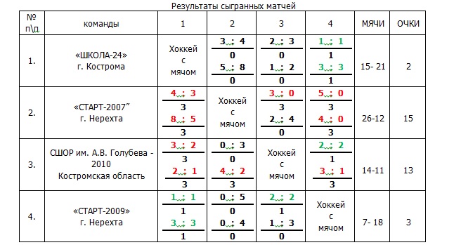 В турнире приняли участие четыре команды: две из детско-спортивной школы Нерехты «Старт-2007» и «Старт-2009», хоккеисты областной спортивной школы олимпийского резерва им. А. Голубева и команда от костромской школы № 24.
