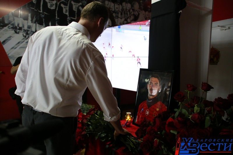 Сегодня глава региона Михаил Дегтярев вместе с мэром Хабаровска Сергеем Кравчуком побывали в арене «Ерофей», где почтили память великого хоккеиста.