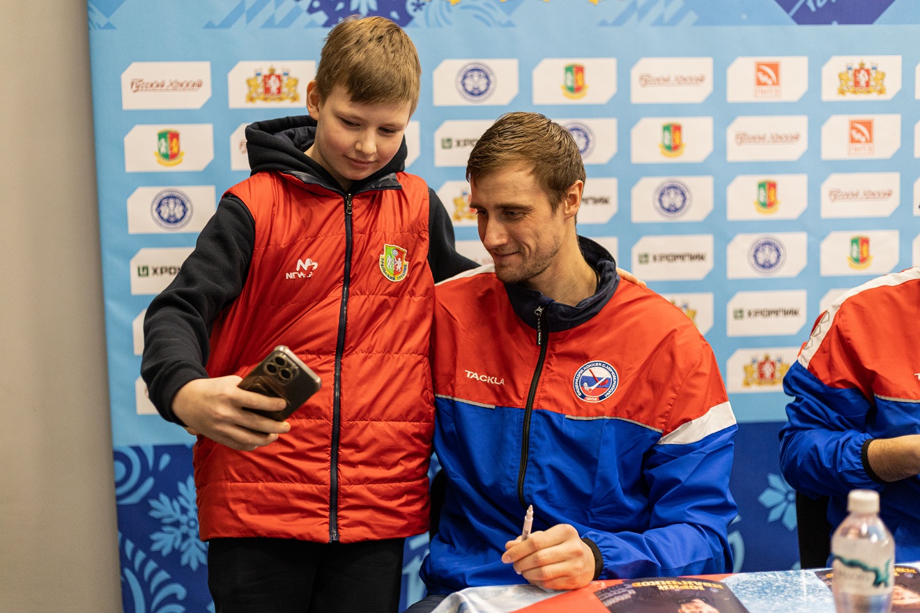 В Ледовом дворце спорта любой желающий получил возможность сделать селфи с игроками мужской национальной сборной России и взять автограф лучших хоккеистов страны.