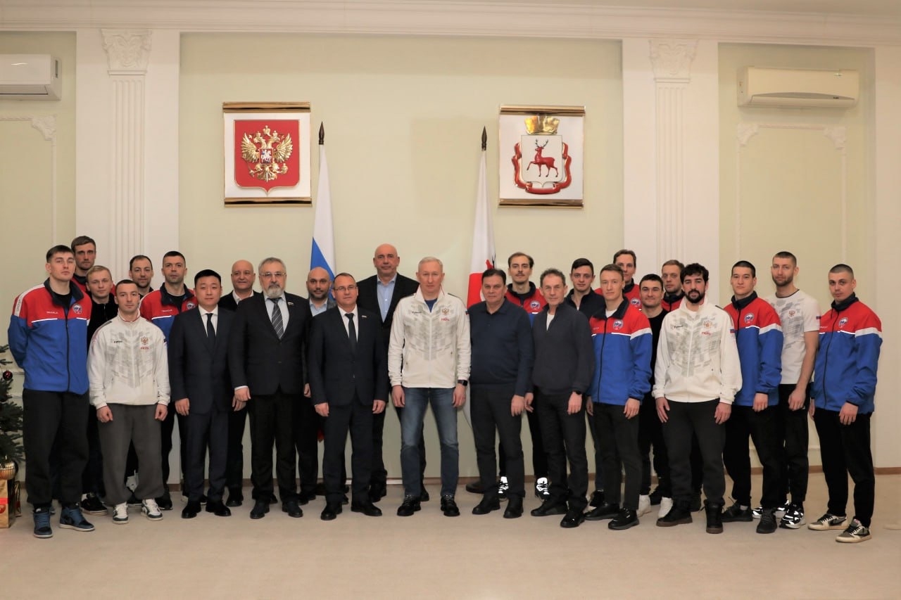 Сегодня, 22 января, на берегах Оки хоккеисты и тренерский штаб национальной сборной России встретились с председателем городской Думы Нижнего Новгорода Евгением Чинцовым.
