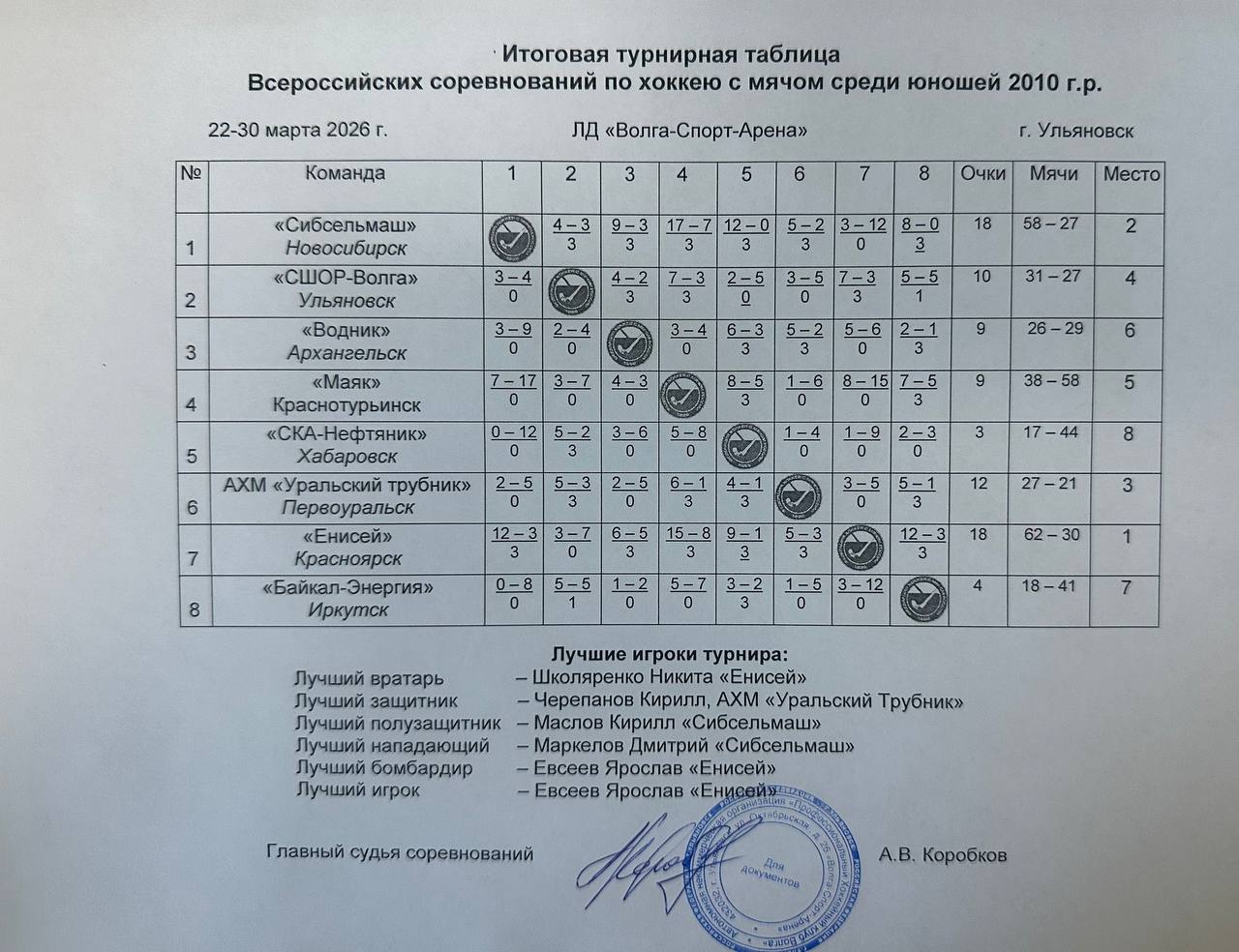 Сегодня, 30 марта, в Ульяновске завершился финал Всероссийских соревнований среди юношей 2010 года рождения.