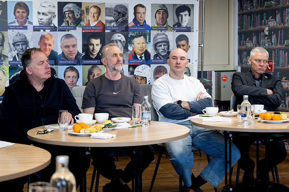 Состав совещания, которое прошло под председательством президента Федерации хоккея с мячом Иркутской области Владимира Матиенко, оказался очень представительным — сразу 5 заслуженных тренеров России! Надо отметить, что ледовый дворец очень постарался, чтобы рабочая атмосфера собрания стала по-настоящему уютной, а с учетом того, что все наставники прекрасно знают друг друга, обстановка получилась по-настоящему домашней.