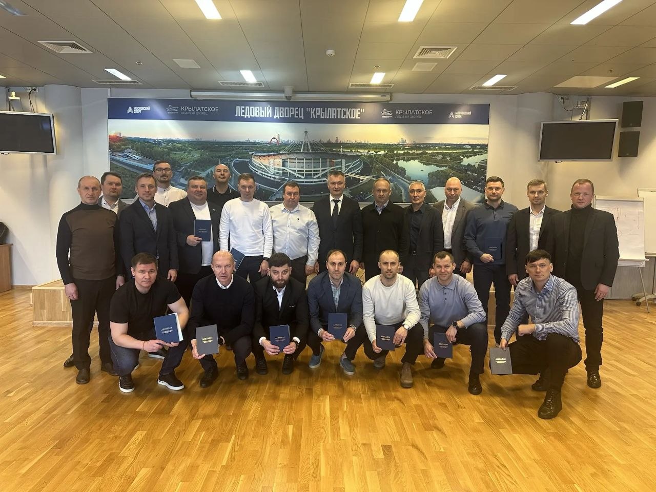 Сегодня, 28 апреля, в ледовом дворце «Крылатское» завершилась весенняя сессия Высшей школы тренеров по хоккею с мячом.