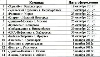 Заявочную компанию 18 октября открывает ХК «Зоркий» и 6 ноября завершаются хоккейные клубы Казани и Абакана.
